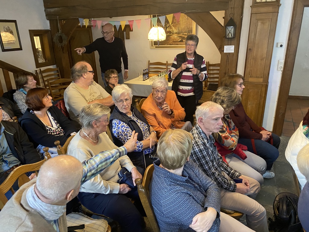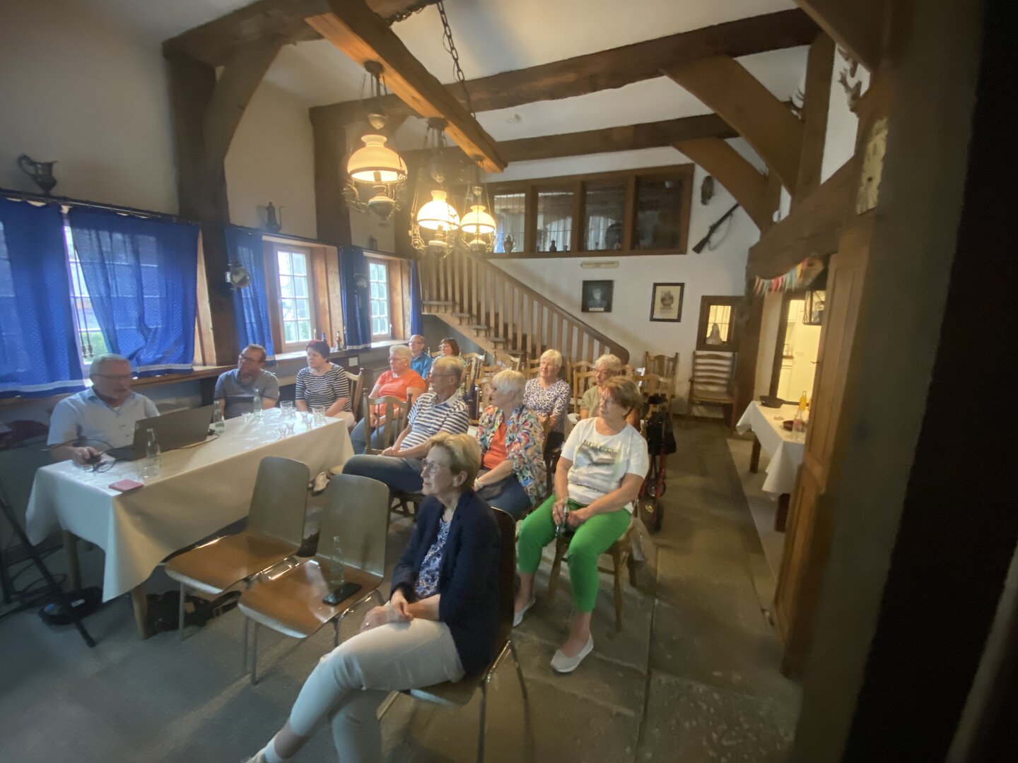Am vergangenen Donnerstag trafen sich 22 Mitglieder und weitere Interessierte der Fahrradgruppe des Heimatvereins Werne in der Westfälischen Stube des Stadtmuseums zum gemeinsamen Austausch. Ute und Peter Helmdach blickten zurück auf die monatlich stattfindenden Ausflüge im Jahr 2024 und erinnerten in humoriger Art und Weise auf so manch eine Gegebenheit, die im Besonderen mit den regenreichen Tagen im vergangenen Sommer zu tun hatten. Es blieb so manches Mal bei plötzlich aufkommenden Regengüssen nicht nur kein Auge trocken, sondern selbst die Inhalte der Hosentaschen wie Portemonnaies etc. wurden klatschnass.