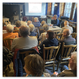 Die Fotoreise durch Werne in der Westfälischen Stube des Museums war wieder gut besucht. Im Fokus stand diesmal die Bauerschaft Horst, und einige der Besucher waren genau aus diesem Grunde gekommen. Herr Herbert Schulze Geiping, Heimatkundler mit Schwerpunkt Horst, führte anhand von alten Fotos und Gebietskarten durch den Abend. Er begann mit den ersten geschichtlichen Spuren ab circa 1300, sponn dann den Faden weiter über die nachweisbaren Rittergüter und die ersten Kapellen zur ersten Schule im Jahr 1753. Als der Landkreis Lüdinghausen 1816 gegründet wurde, übernahm Johannes D. von Schlebrügge das Amt des ersten Landrates. Er wohnte auf dem Adelssitz Beckendorf in Horst. Auf Luftbildern kann man heute anhand von Bodenverfärbungen die ehemaligen Gräften und Grundrisse der Burganlagen dieses Adelssitzes noch erkennen. Dann folgten viele alte Fotos von Bauernhöfen, Kötterhäusern. Manchmal waren die ausgeübten Berufe wie Schmied, Zimmermann oder Stellmacher noch erkennbar. Es folgte das Schulwesen in seiner Entwicklung bis zum heutigen Tag mit der gemeinschaftseigenen Kita und ihrer Turnhalle. Dabei wurden insbesondere bei den Horster Besuchern viele Erinnerungen ausgepackt. Schützenkönige und das Dorfgemeinschaftshaus durften am Ende nicht fehlen.
