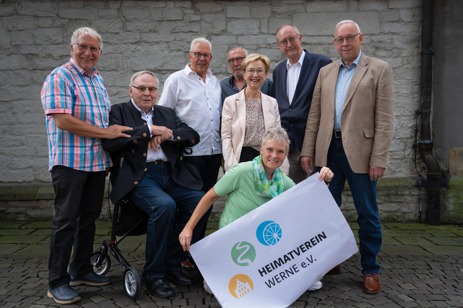 Der Museumsgarten war mit 70 geladenen Gästen bis auf den letzten Platz gefüllt. Vertreter aus befreundeten Vereinen, Bildungseinrichtungen, Kultur, Verwaltung, Politik und Förderer des bedeutungsvollen Anlasses ließen es sich nicht nehmen, dem Heimatverein Werne zu seinem hundertjährigen Bestehen zu gratulieren. Die Vorsitzende, Barbara Schaewitz, freute sich bei strahlendem Sonnenschein über die vielen Gratulanten und begrüßte im Besonderen den Ehrenvorsitzenden Wilhelm Lülf, die Ehrenmitglieder Ursula Funhoff und die Eheleute Änne und Gisbert Fleischer. Bürgermeister Lothar Christ stach mit seiner besonders detaillierten Rede über die historischen Hintergründe und den Werdegang sowie die Entwicklung des Heimatvereins bis heute hervor. Neben den Grußworten des Vertreters des Kreisheimatvereins Coesfeld, Dr. Hendrik Lange, wurde ein persönlicher Glückwunschbrief der erkrankten Ministerin Ina Scharrenbach, der den Heimatverein kurz vorher erreichte, den Gästen vorgetragen.