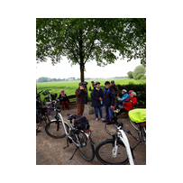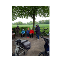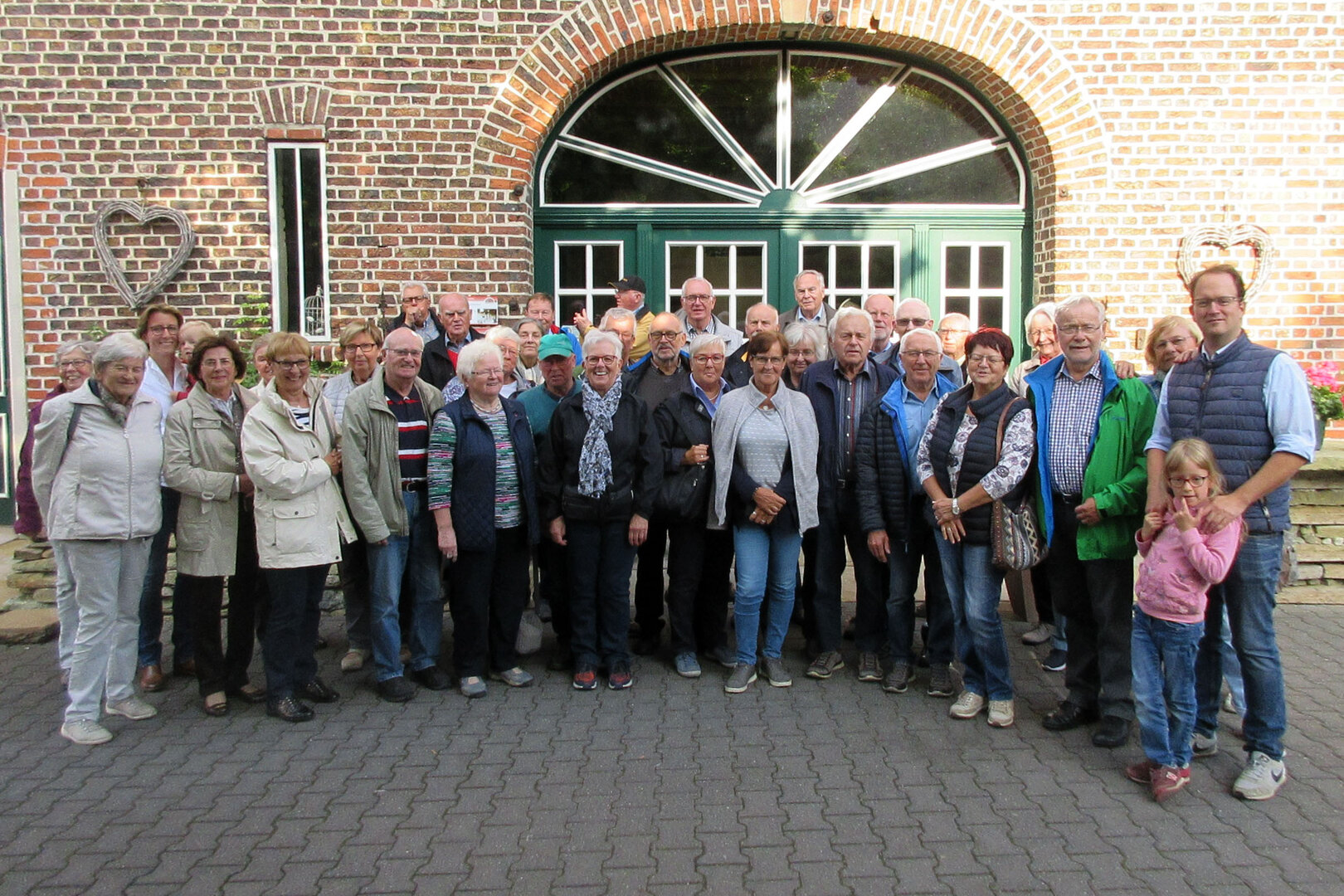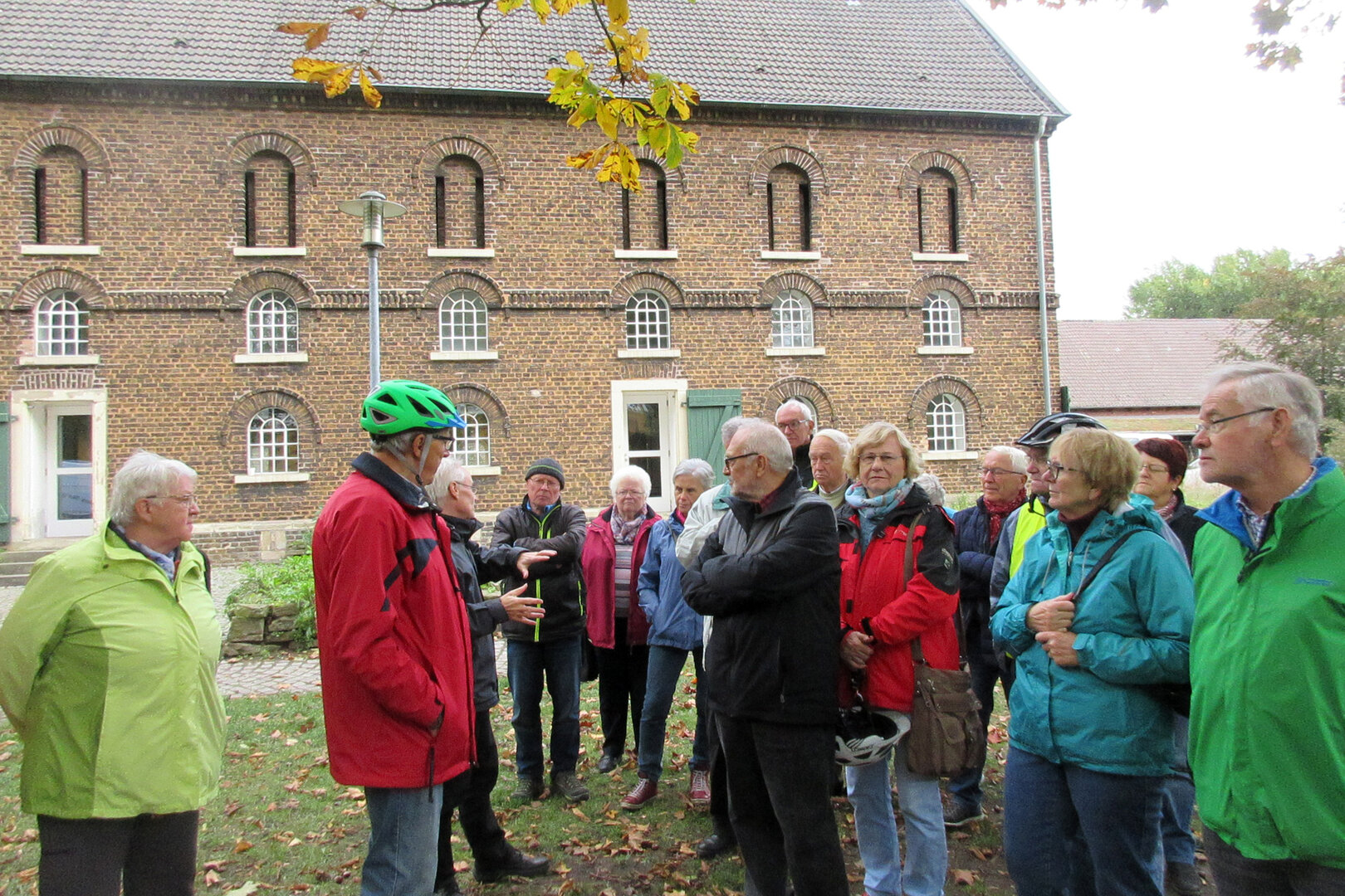 Wir erkunden in jedem Jahr per Fahrrad eine unserer Bauerschaften. In diesem Jahr ging es in den östlichen Teil der Bauerschaft Holthausen. Unter Führung von Joseph Funhoff machten sich 26 Mitglieder mit dem Fahrrad auf den Weg. Ziel war der Hof Bleckmann an der Wesseler Straße. Dort waren noch mehr als 15 Mitglieder mit dem Auto angereist. Vom Hofherrn erfuhren wir viel Interessantes aus der Geschichte des mehrere Jahrhunderte alten Hofes. Joseph Funhoff gab Erläuterungen zur Bauerschaft Holthausen.
