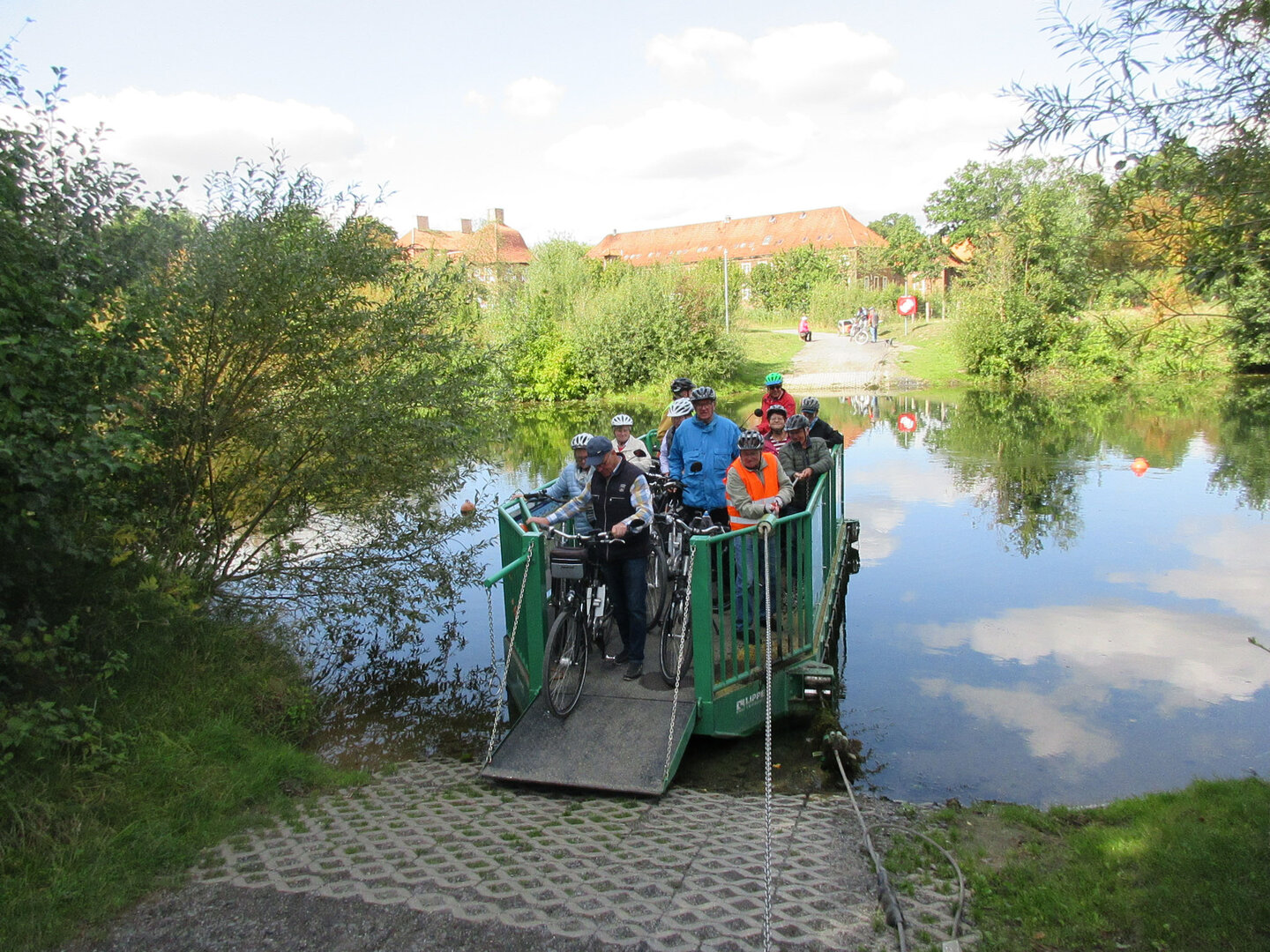 Unter dem Motto "Wir erkunden unsere Heimat" starteten 17 Mitglieder zur dritten und damit letzten Ganztages-Fahrradtour in diesem Jahr. Unter der Leitung von Mitglied Peter Helmdach führte die Strecke entlang des Hammer Flughafens, vorbei am Schloss Heessen zum Schloss Oberwerries, wo eine Mittagspause eingelegt wurde. Ganz in der Nähe setzte die Gruppe mit der Selbstbedienungs-Fähre über die Lippe. Im Hammer Kurpark war eine Einkehr für Kaffee und Kuchen. Dann ging es am Kanal entlang bis zum Forellenhof in Rünthe, wo eine erneute Pause eingelegt wurde. Zurück in Werne zeigte der Tacho glatte 50 Kilometer an.