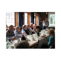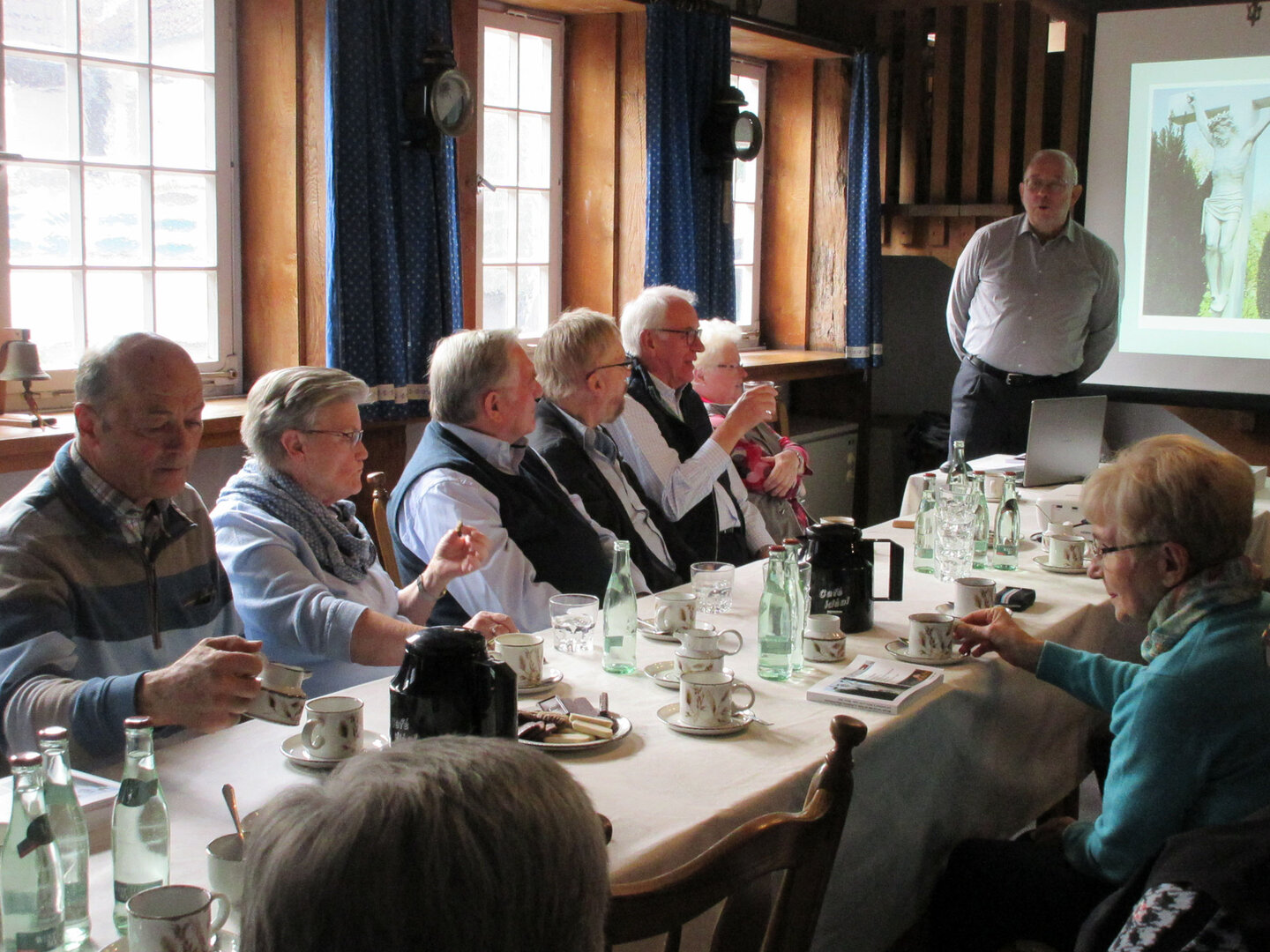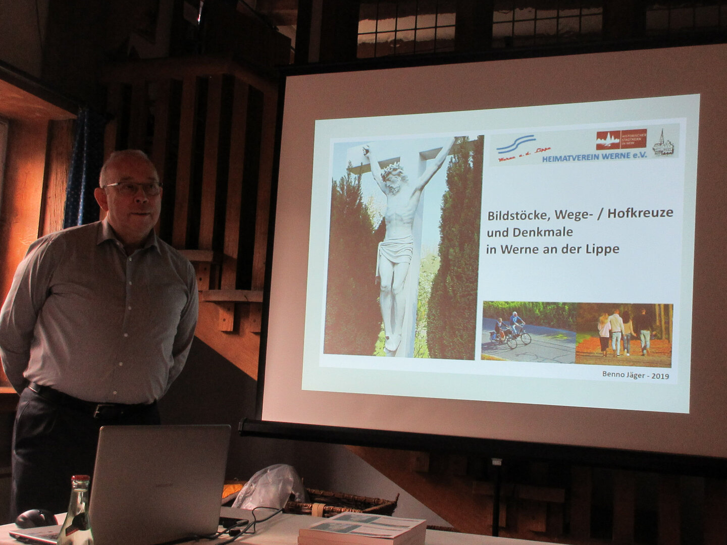 Wir hatten in die Westfälische Stube des Stadtmuseums eingeladen. Dort hat Vorstandsmitglied Benno Jäger sein Buch "Bildstöcke, Wege-/Hofkreuze und Denkmale in Werne an der Lippe" vorgestellt. Er präsentierte die Objekte mit Bildern auf der Leinwand und machte daraus ein interessantes Ratespiel, bei dem jeder Teilnehmer sein Wissen hierüber einbringen konnte. Das Buch mit Fotos und näherer Beschreibung sowie Wegweiser zu den mehr als einhundert Objekten, die "mit dem Fahrrad oder per Pedes" erkundet werden können, bietet der Heimatverein für 7,00 € an. Es kann bei Benno Jäger sowie beim Verkehrsverein, im Stadtmuseum, beim Stadtmarketing und bei Bücher Beckmann erworben werden.
