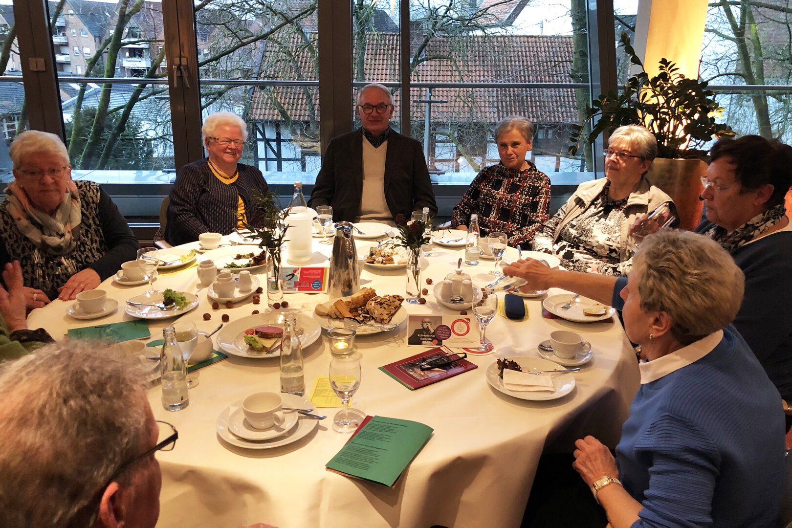 Wie in jedem Jahr, fand auch jetzt wieder die Adventfeier im Hotel am Kloster statt. "Alle Jahre wieder", unter diesem Motto stand der Wechsel von gesungenen Liedern (unterstützt von unserer Vereinscombo) und vorgetragenen Geschichten. Wilhelm Lülf begrüßte als 1. Vorsitzender die Gäste - ein volles Haus - es waren mehr gekommen als erwartet. Joseph Funhoff moderierte den ersten Teil der Veranstaltung - Ursula Funhoff übernahm den zweiten Teil. Beide hatten wieder ein beeindruckendes Programm zusammengestellt. Die Anwesenden ließen sich nicht lange bitten und sangen lautstark die schönen Weihnachtslieder mit. Hermine Schindler trug die Geschichte "Die vier Kerzen am Adventskranz" vor - Aenne Fleischer eine Weihnachtsgeschichte eines unbekannten Verfassers - ebenso Friedrich Brinkbeumer als "tierische Weihnachtsgeschichte". Nach der Pause mit Schnittchen und Gebäck erlebten die Teilnehmer die "Bescherung von Hans Dieter Hüsch", vorgetragen von Benno Jäger. Bevor es zum Abschluss "Stille Nacht" hieß, trug Ursula Funhoff noch das Gedicht "Markt und Straßen" von Joseph von Eichendorff vor. Unser 1. Vorsitzende hatte das Schlusswort und lud wieder ein zur Adventfeier in 2020.