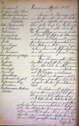 Als erstes wird die Gründung des Heimatvereins gespiegelt: Das Protokoll der Gründungsveranstaltung und dessen Übertragung in heutige Lesbarkeit werden vorgestellt.