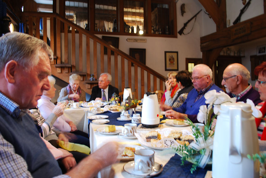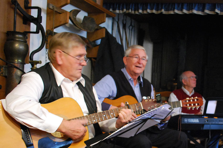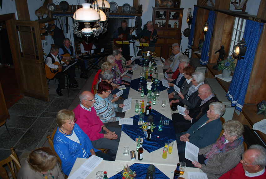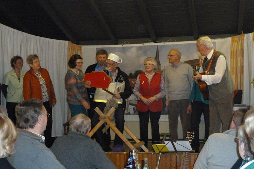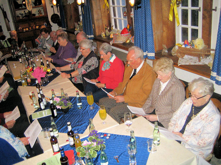 Wir hatten zum "Frühlingssingen in der Westfälischen Stube" eingeladen und 40 Heimatfreunde kamen, um den Winter mit bekannten Frühlingsliedern zu verabschieden. Die Sänger wurde instrumental von der Vereinscombo mit Akkordeon, Gitarren und Mundharmonika begleitet. Das Liedersingen wurde zwischendurch immer mal wieder durch passende Wortbeiträge von Aenne Fleischer u.a. unterbrochen.