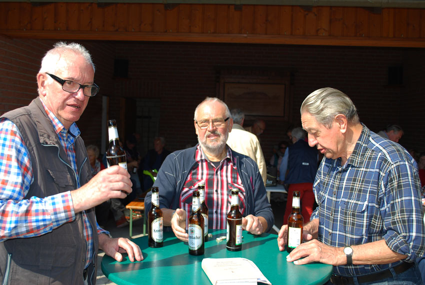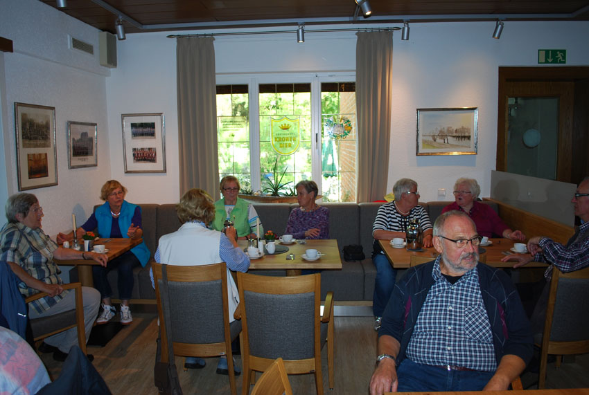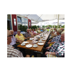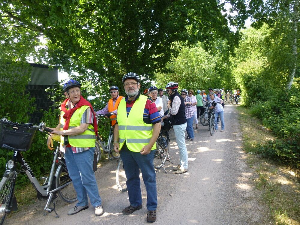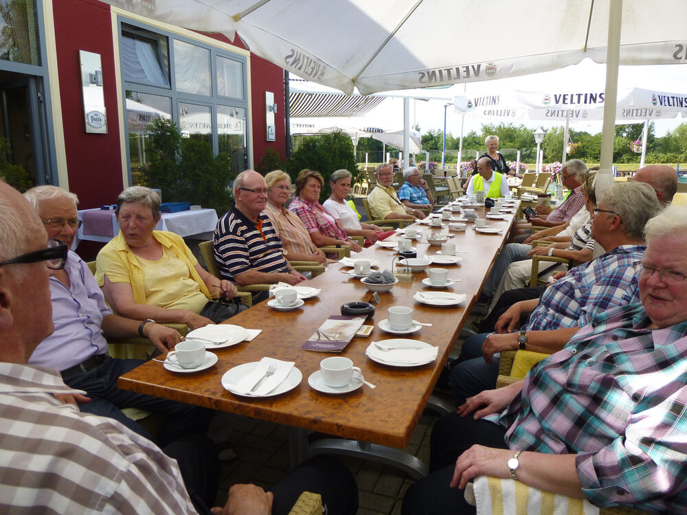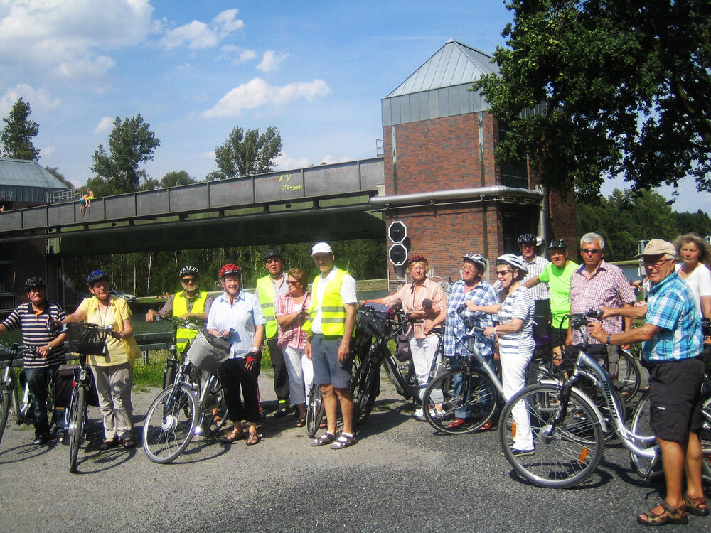 Trotz der hohen Temperaturen von 35 Grad hatten sich 19 Mitglieder am vereinbarten Treffpunkt eingefunden, um die bereits wegen der großen Hitze auf gut 20 Kilometer reduzierte Strecke mit ihren Fahrrädern anzugehen. Es ging am Kanal entlang bis nach Heil und von dort aus um das "Große Holz" zur anderen Seite des Kanals bis zur Marina Rünthe, wo die Kaffeetafel bereits gedeckt war.