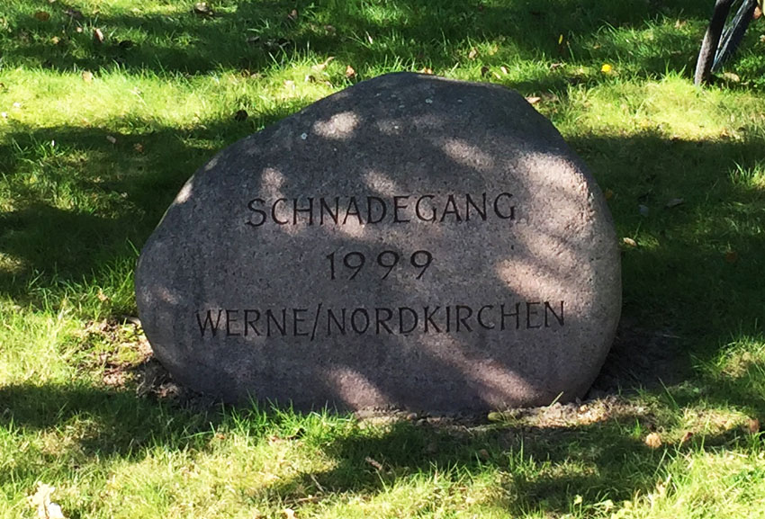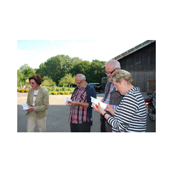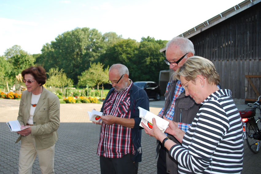Bei sonnigem Wetter starteten wir mit 19 Mitgliedern zur letzten "Fahrt ins Blaue". Unsere Tour führte uns über Winkelset durch die Bauernschaften Holthausen und Schmintrup. Am Schnadestein, der 1999 gemeinsam mit Nordkirchen auf der Schwanne gesetzt wurde, wurde eine kurze Pause eingelegt. Joseph Funhoff erzählte die Geschichte des Schnadeganges und berichtete über die bisher gesetzten Schnadesteine. Dann ging es zu Kaffee und Kuchen in den Wittenbrinks Hof. Hier wurde unsere Sprecherin des Arbeitskreises Fahrradtouren, Erika Brokamp, besonders gelobt und damit ihr Engagement bei der Ausarbeitung und Durchführung der diesjährigen Fahrradtouren gewürdigt.