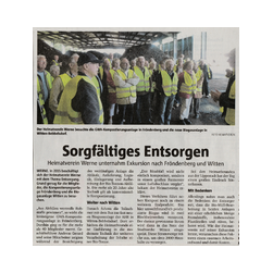 Bei schönem Wetter fuhren wir mit interessierten Teilnehmern zum Entsorgungszentrum der Firma Remondis in Lünen und konnten dort durch eine professionelle Führung die weiträumige Anlage für die Entsorgung vieler verschiedener Wertstoffe bestaunen. Der Abschluss der Fahrt fand bei "Mutter Stuff" mit einem Spargelessen statt.