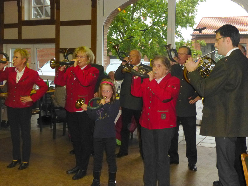 Freitag, 9. Oktober 2015Mit mehr als 140 Teilnehmern feierten wir auf dem Hof Hörmann unser diesjähriges Erntedankfest. Unter der Leitung von Aenne Fleischer und ihrem Motto "Mein Gott, wie schön ist Deine Welt" wurden immer wieder gemeinsam bekannte stimmungsvolle Herbstlieder gesungen, die von unserer Vereinscombo unter Leitung von Gisbert Fleischer begleitet wurden. Das Bläsercorps des Hegerings sorgte für eine jagdliche Stimmung und die Volkstanzgruppe "Bergzahl Rübezahl" trug mit ihren Tänzen zum Gelingen dieses Abends bei, da sie auch einige Gäste in ihre Tänze mit einbezogen haben. Der Schützenverein Lütkeheide als korporatives Mitglied sorgte für das leibliche Wohl unserer Gäste. Das Publikum dankte den Akteuren mit viel Applaus für einen gelungenen Abend.