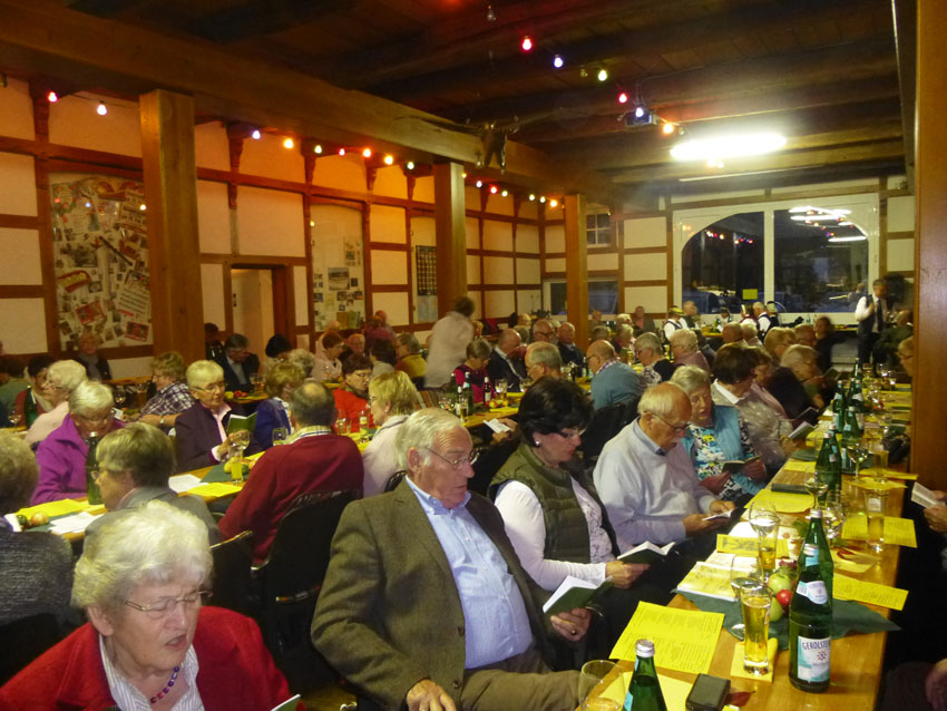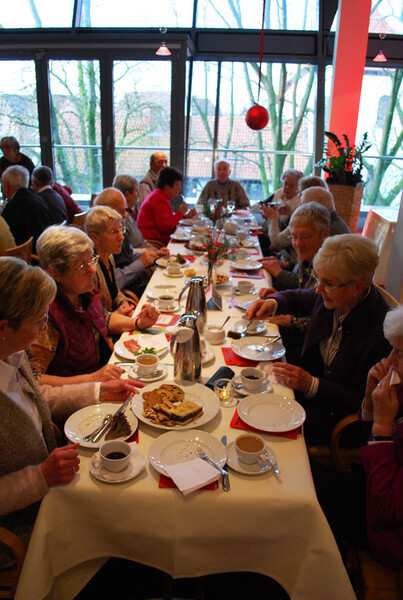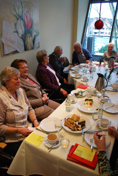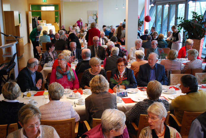 Mit 120 Mitgliedern trafen wir uns im Hotel am Kloster zu unserer jährlichen Adventfeier. Ursula und Joseph Funhoff hatten ein bewegendes Programm zum Thema "Lasst in Erwartung froh uns singen ..." zusammengestellt und führten durch den Nachmittag. Hierbei wechselten sich gemeinsames Singen von Weihnachts-liedern mit vorgetragenen Geschichten und Gedichten ab. Unser Vorsitzende Wilhelm Lülf begrüßte die Gäste und ging dabei auch auf die aktuellen Geschehnisse rund um die zu uns kommenden Flüchtlinge ein. Unterbrochen wurde die Veranstaltung von einem gemeinsamen Kaffeetrinken. Es war einmal mehr eine Adventfeier nach dem Geschmack unserer Mitglieder. Dabei lobten sie den Rahmen als auch das dargebotene Programm. Die gesungenen Lieder wurden instrumental begleitet von der Gruppe um Gisbert Fleischer.