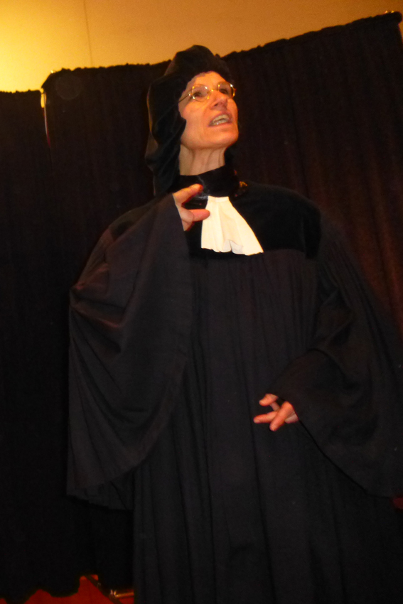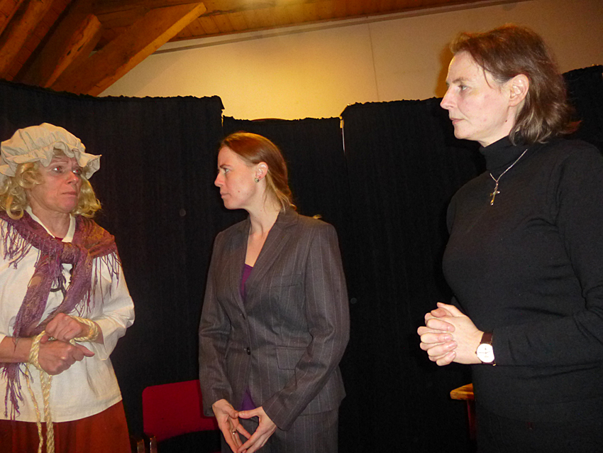 Nach dem Vortrag bot die Kabarettgruppe "Kaktusblüten" sehr gekonnt eine Szenerie dar, in der ein Hexenprozess nachgestellt wurde - mit einer ironischen Spange in die heutige Zeit.