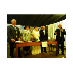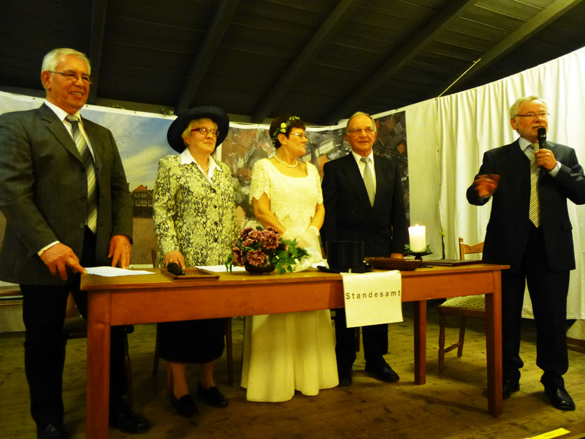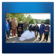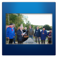 Ideales Fotowetter mit Sonne auf dem Lippefluss bildete eine besondere Kulisse für die Enthüllung des Schnadesteines durch die anwesenden Funktionsträger. Wilhelm Lülf übernahm mit humorigen Worten die Begrüßung und erklärte den Grund dieser Veranstaltung. Bürgermeister Lothar Christ und der stellv. Bürgermeister von Bergkamen Kay Schulte ergänzten dies mit recherchiertem Hintergrundwissen. Wolfgang Kerak setzte die Schere an und gemeinsam wurde der Stein enthüllt. Der gesamte Akt wurde auf bereitliegenden Urkunden besiegelt, die beide Städte in einer Rolle mit in ihre Gemeinde tragen konnten - natürlich der Höhepunkt dieses Tages.