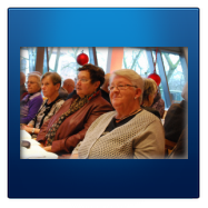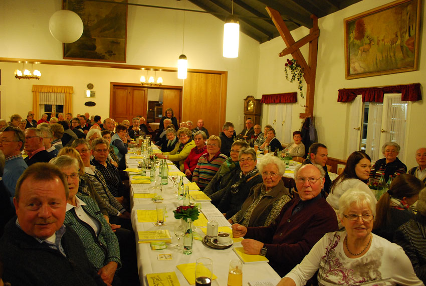 Bereits um 14.00 Uhr war der adventlich geschmückte Raum im Hotel am Kloster voll besetzt. Wie im Vorjahr hatten sich 120 Mitglieder und Freunde unseres Heimatvereins zur Adventfeier angemeldet. Joseph und Ursula Funhoff hatten ein umfangreiches Intermezzo aus Liedern, Gedichten und Geschichten unter dem Motto "Nur die Liebe bringt den Frieden" zusammengestellt. Unser 1. Vorsitzende Wilhelm Lülf begrüßte die Gäste und leitete dann zu Joseph Funhoff über, der den 1. Teil des Programmes moderierte und Gedanken zu Weihnachten 2016 vortrug. Von weihnachtlichen Liedern unterbrochen, folgten dann Aenne Fleischer mit einem Vortrag "Es gibt nur eine Großmacht auf Erden" und Elisabeth Schulte mit dem "Märchen vom Auszug aller Ausländer". Für den musikalischen Rahmen sorgte wieder einmal Gisbert Fleischer mit seiner Combo. Nach dem Lied "Ein bisschen Frieden" von Nicole ging es in die Kaffeepause, wo Kuchen und Schnittchen gereicht wurden. Danach führte Ursula Funhoff durch den 2. Teil der Veranstaltung. Neben weiteren Weihnachtsliedern hörten wir von Ursula Funhoff eine Geschichte von Karl-Heinrich Waggerl "Worüber das Christkind lächeln musste" und ein Gedicht "Wann fängt Weihnachten an?" von Rolf Krenzer, vorgetragen von Benno Jäger. Nach guten Wünschen von Ursula Funhoff und den Schlussworten der Vorsitzenden endete der besinnliche Nachmittag mit dem Lied "Stille Nacht, heilige Nacht".