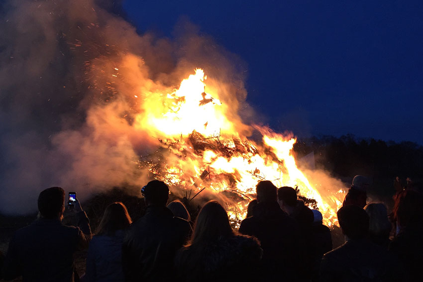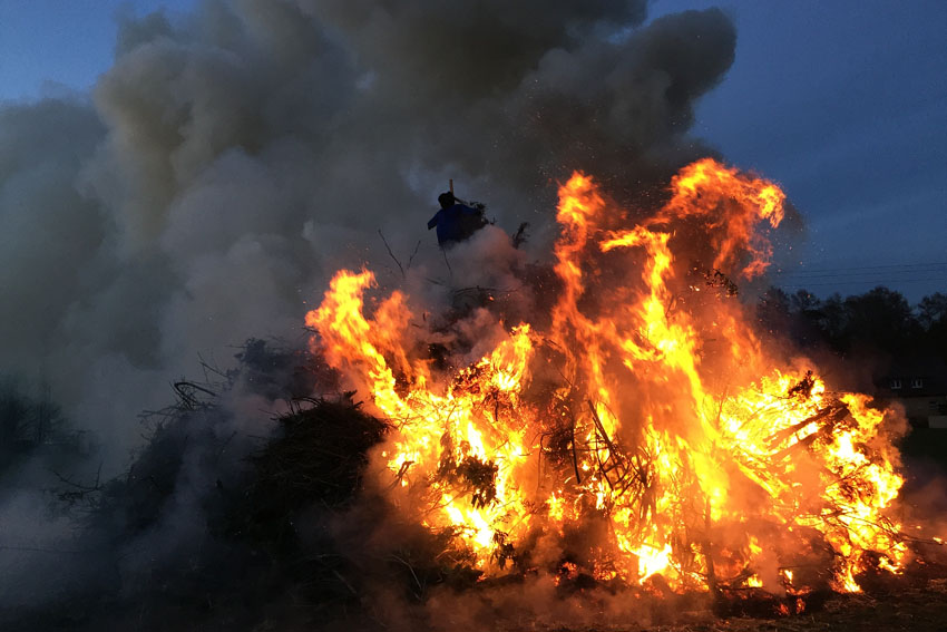 Zu Ostern werden in der Liturgie der Kirche und vielerorts aufgrund verschiedener Bräuche Feuer entfacht. Diese Volkssitte ist seit 1559 dokumentiert. Unser Heimatverein besucht seit Jahren am Ostersonntag eines der großen Osterfeuer unserer Stadt. Der 1. Vorsitzende Wilhelm Lülf und einige Mitglieder waren in diesem Jahr Gast bei der Veranstaltung des Schützenvereins Nierstenholz - eines von über 100 angemeldeter Osterfeuer in Werne.
