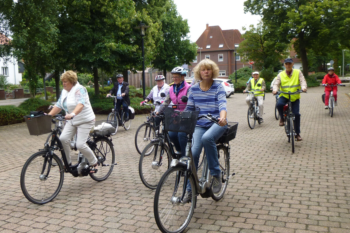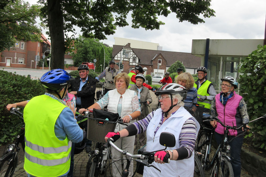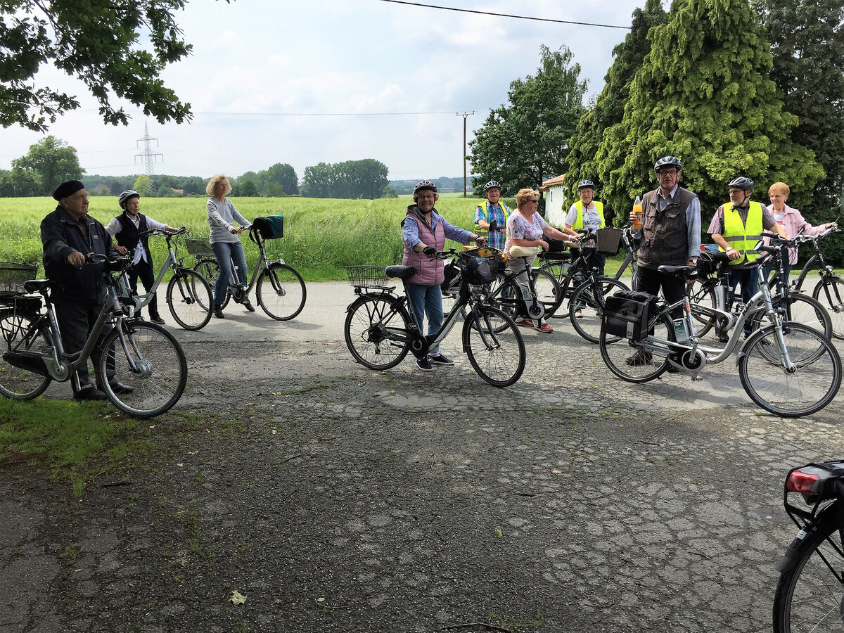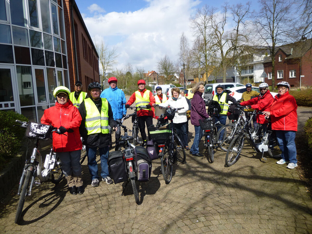 Mit einem kurzen "Anradeln" starteten wir in die Radlersaison unter dem Motto "Fahrt ins Blaue". Unter der Leitung von Mitglied Erika Brokamp fuhren die Teilnehmer durch die nördlichen Bauernschaften unserer Stadt. Bei nicht ganz optimalem Radwetter wurde die Fahrt in Wessel beim "Heidekrug" für Kaffee und Kuchen unterbrochen.