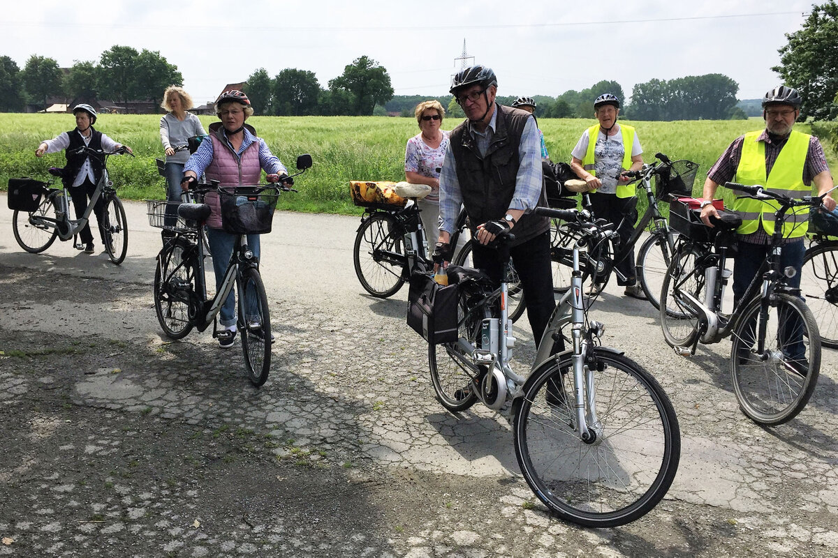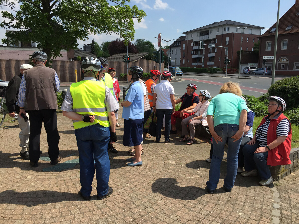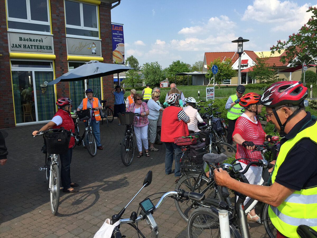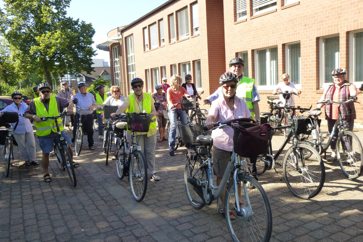 Mit einem kurzen "Anradeln" starteten wir in die Radlersaison unter dem Motto "Fahrt ins Blaue". Unter der Leitung von Mitglied Erika Brokamp fuhren die Teilnehmer durch die nördlichen Bauernschaften unserer Stadt. Bei nicht ganz optimalem Radwetter wurde die Fahrt in Wessel beim "Heidekrug" für Kaffee und Kuchen unterbrochen.