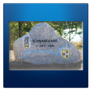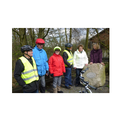 Nach einem kurzen Aufenthalt wanderten wir weiter zum Standort des von Steinmetzmeister Wolfgang Kerak erstellten Schnadesteines an der Schlagt - am Verlauf des neuen Rad- und Wanderweges auf der alten Zechenbahntrasse.