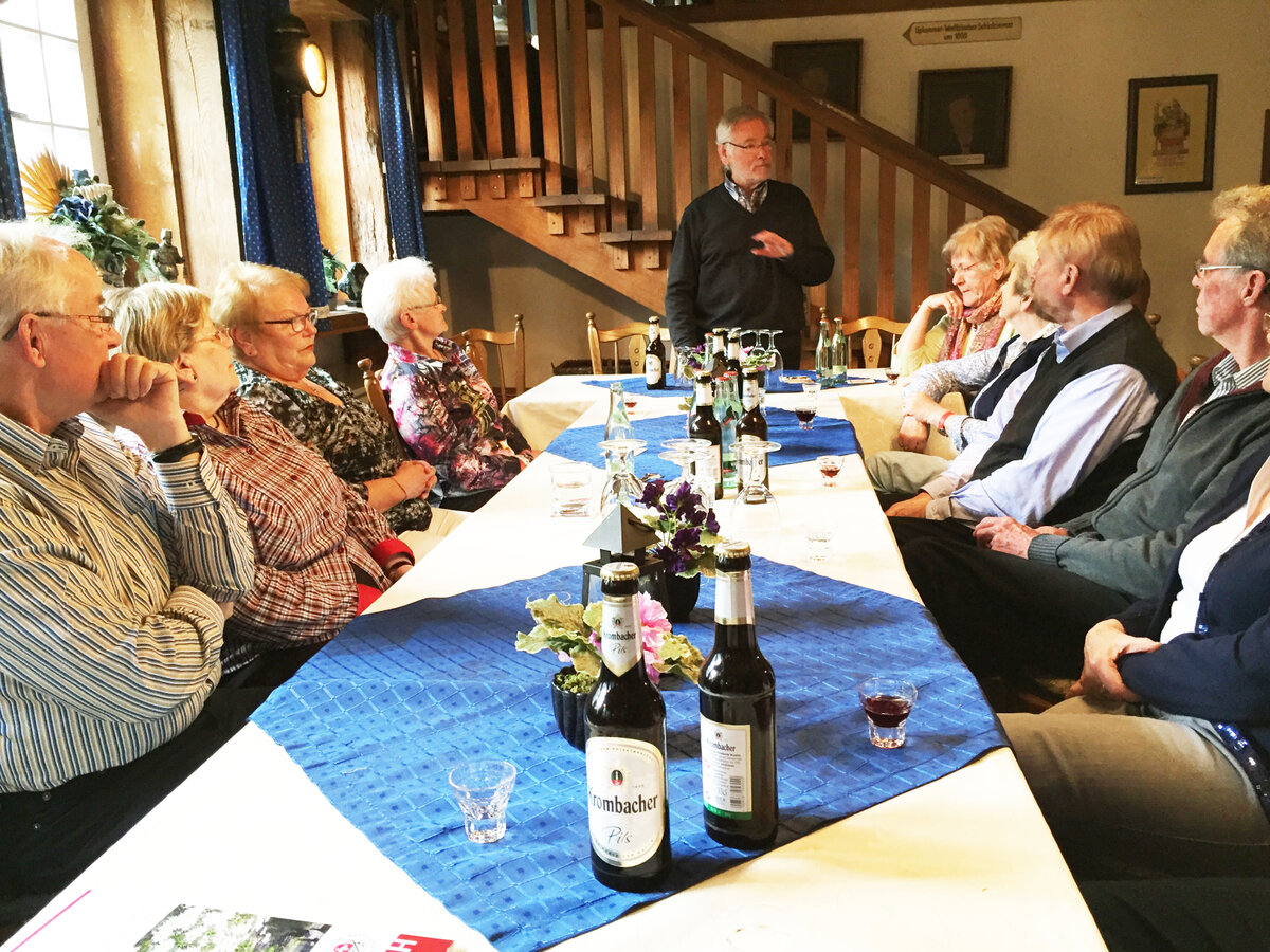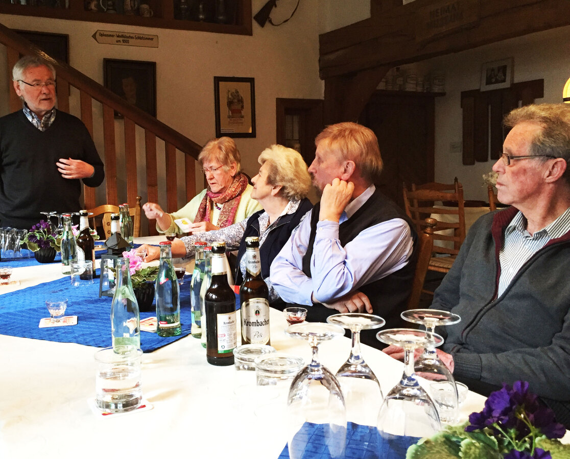"Nu sin se uwies" war der erste Kommentar beim ersten plattdeutschen Stammtisch unseres Heimatvereins im Stadtmuseum. Gemeint war hier die "Geschichte" um die Versetzung des Ausrufers auf dem Marktplatz. 13 Mitglieder waren gekommen, um heiter "Dönekes" aus dem aktuellen Zeitgeschehen zu erzählen - natürlich op platt. Hierbei wurde u.a. festgestellt, dass man auf plattdeutsch niemanden beleidigen kann - aber sich Situationen mit einem Begriff aus dem plattdeutschen Wortschatz bestens beschreiben lassen. Eine Übersetzung ins Hochdeutsche fällt dabei schon schwer. Die Zeit verging wie im Fluge. Man regte an, diese Art des Stammtisches für zwei bis drei Nachmittage jährlich einzuplanen. Zum Abschluss wurde das Lied "Gued Gaohn" gesungen.