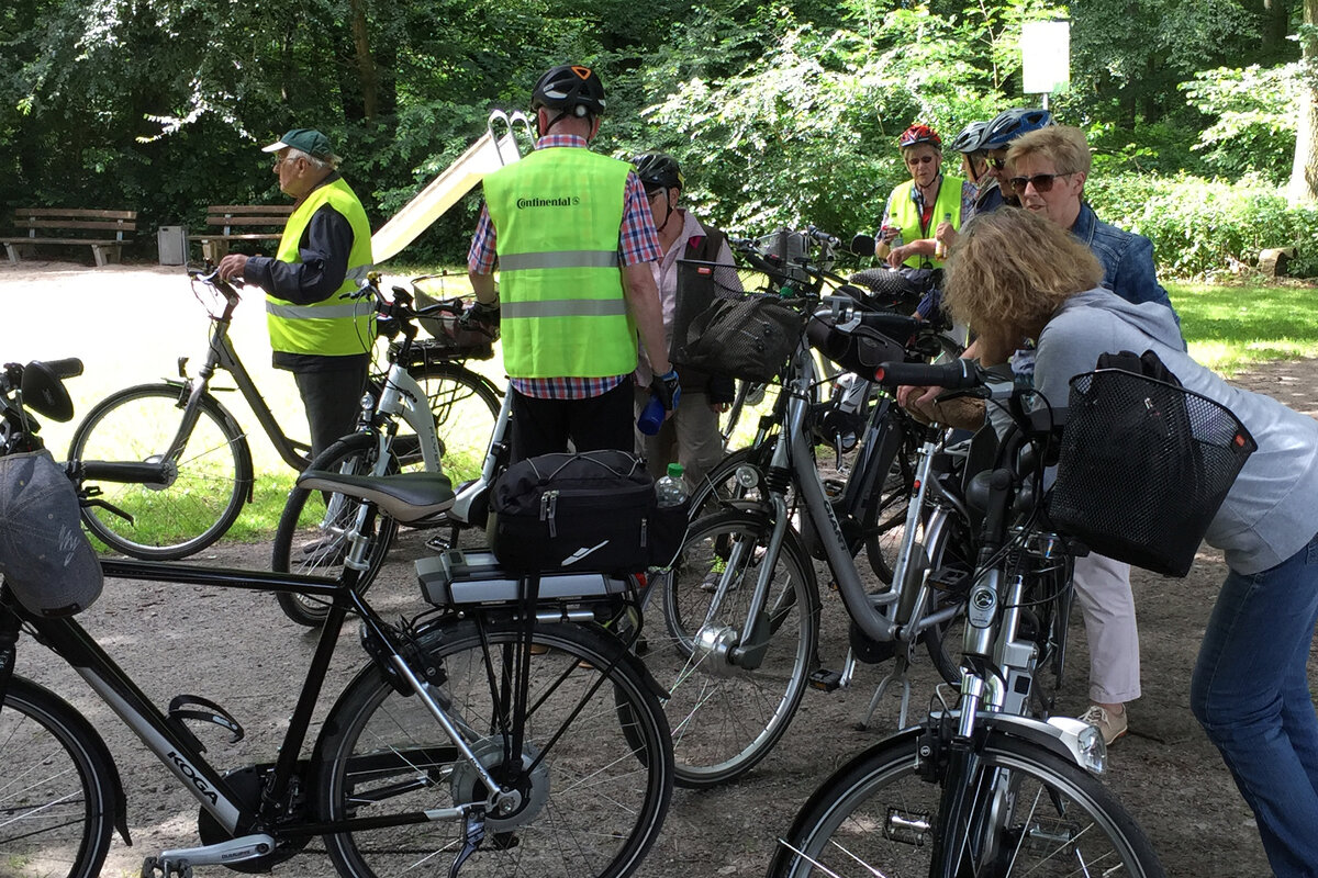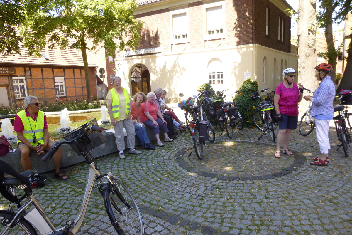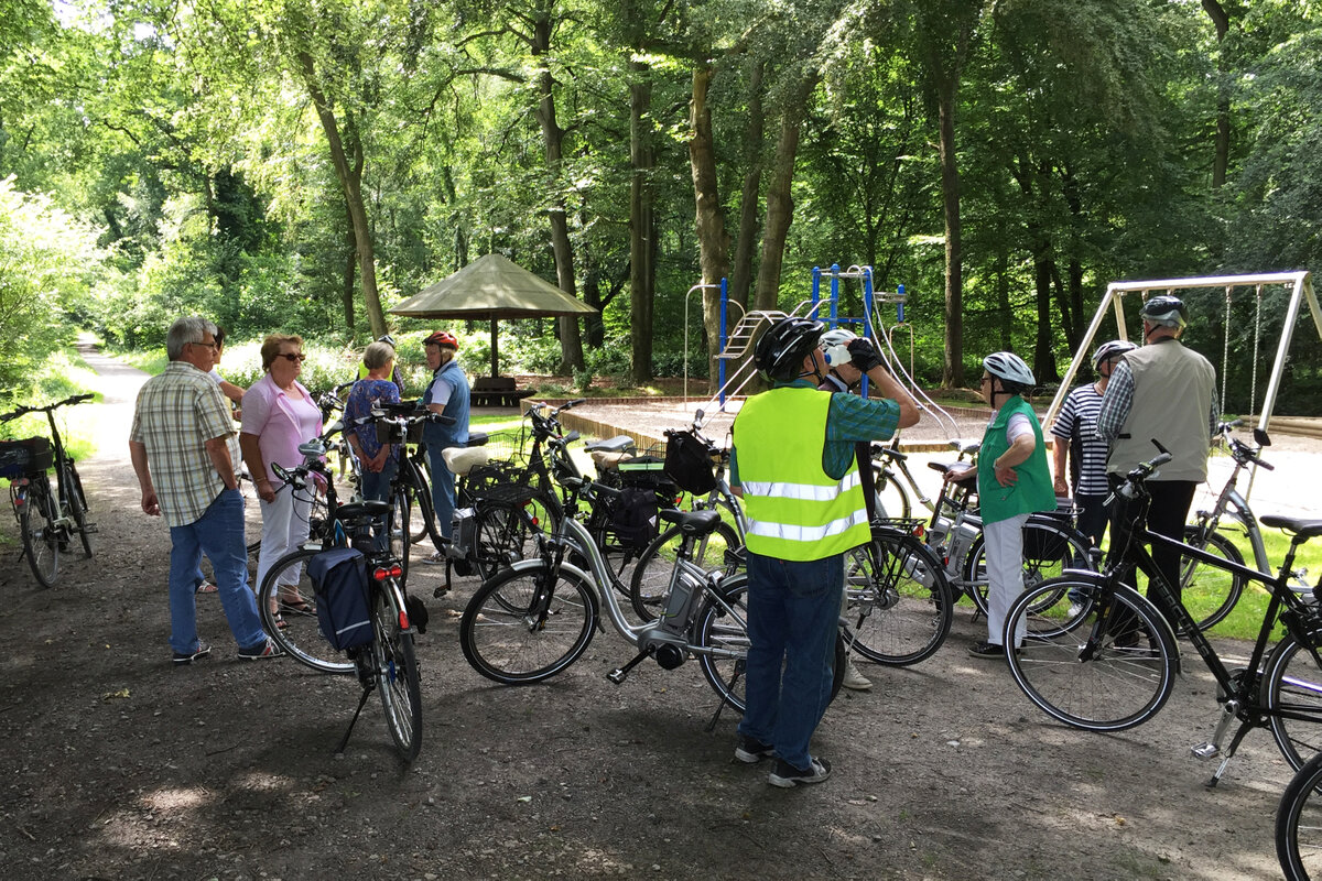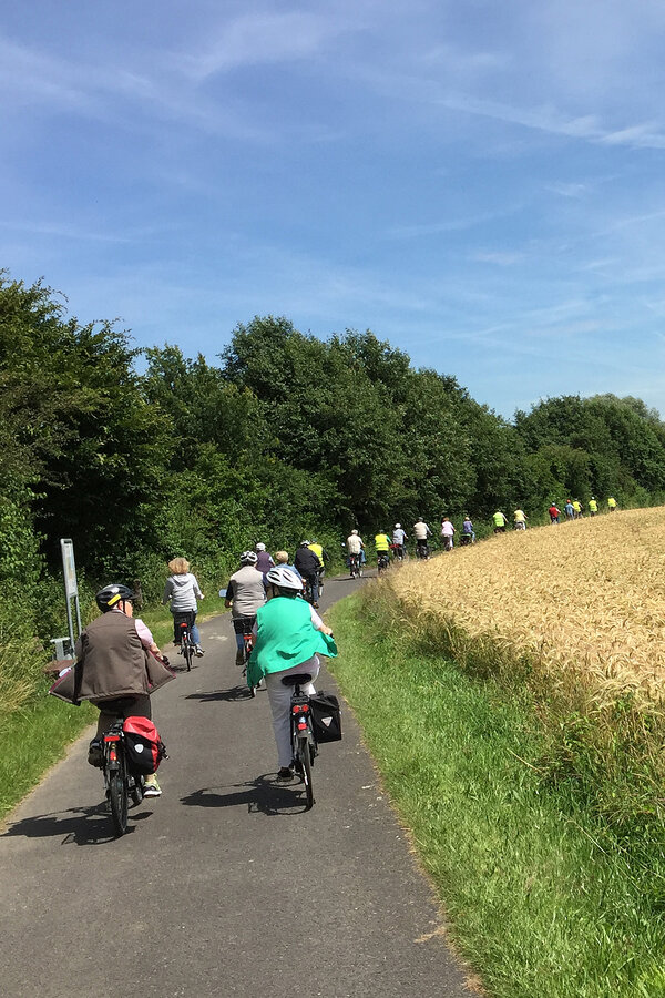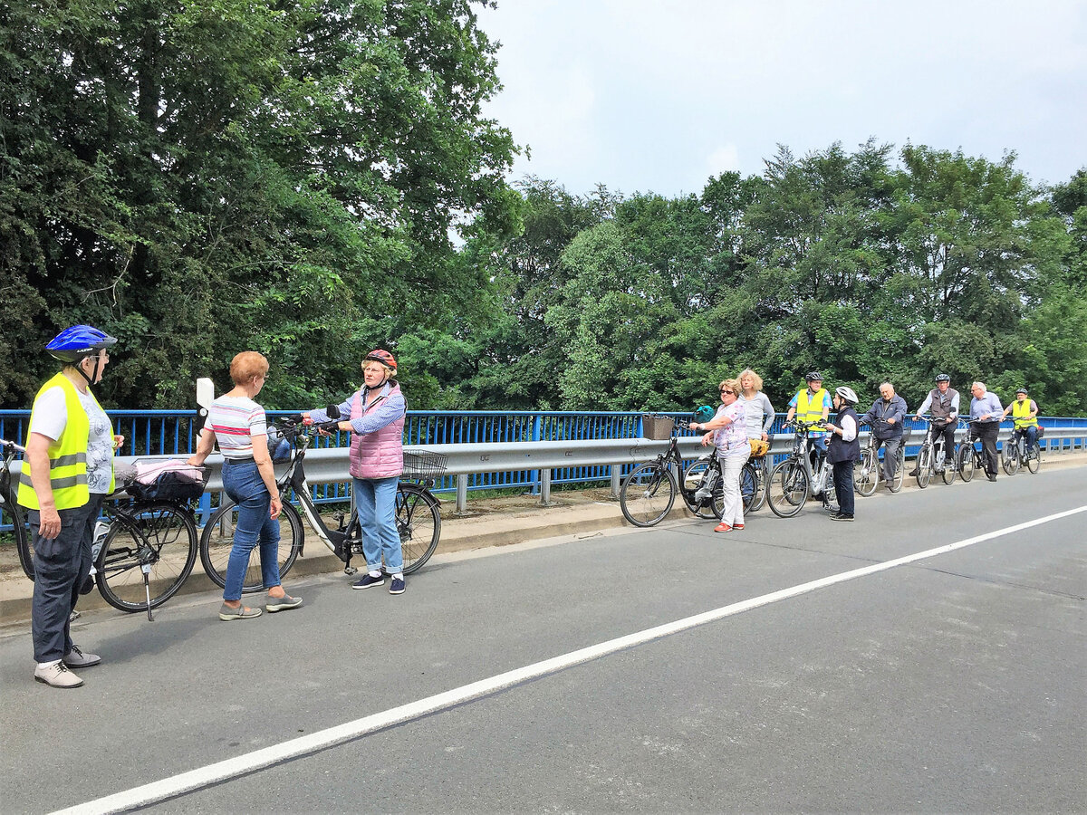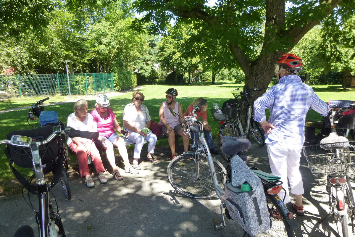 Auf der Ganztagestour mit dem Fahrrad führte uns Erika Brokamp über 65 Kilometer durch die Münsterländische Parklandschaft. Über Wessel und Nordick ging es am Rand von Ameke vorbei nach Drensteinfurt, wo am Erlbad eine Mittagspause eingelegt wurde. Nach der Stärkung fuhren wir weiter an Walstedde vorbei in Richtung Ahlen, bogen dann aber ab zum Standortübungsplatz nördlich von Heessen. Im "Alten Forsthaus" wurde eine zweite Pause eingelegt - bei Kaffee und Kuchen sowie gekühlten Getränken. Von dort aus ging es über Barsen und Horst zum Ausgangspunkt in Werne zurück. Fazit: Ein besonders entspannender Tag dank der vielen verkehrsarmen Wirtschaftswege und wie gewohnt - perfekt ausgearbeitet. 12 Mitglieder nahmen teil.