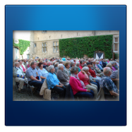 Das "offene Singen" als Gemeinschaftsveranstaltung der Heimatvereine Herbern und Werne konnte trotz schlechter Wettervorhersagen bei angenehmen Temperaturen und nur einigen Tropfen Regen wie geplant durchgeführt werden. Es fand bereits zum 15. Mal statt. Über 200 Gäste konnten vom Vorsitzenden des Heimatvereins Herbern, Josef Bernsmann, begrüßt werden. Friedrich Brinkbeumer stimmte mit einem Kanon auf dieses kleine Jubiläum ein. Lieder aus dem Heftchen des Eggegebirgsvereins - musikalisch unterstützt von der Instrumentalgruppe des Heimatvereins Werne unter Leitung von Gisbert Fleischer führten zu einer besonderen Athmosphäre im Innenhof des Schlosses (Gisbert Fleischer am Akkordeon, Egon Dellwig mit der Mundharmonika, sowie Edith Springmann, Hermann Schwenken, Karl-Heinz Stengl und Friedrich Brinkbeumer mit ihren Gitarren). Aufgelockert wurde das gemeinsame Singen durch Gedichte bzw. Vorträge von Christel Homann (Heimatverein Herbern), Änne Fleischer (Heimatverein Werne) und Maria Roppertz (Heimatverein Heessen). Für ihren Sologesang "Drei Zigeuner" erntete Christel Homann einen besonderen Applaus. Unser Ehrenvorsitzende Joseph Funhoff bedankte sich bei allen Akteuren und natürlich bei den Besuchern recht herzlich. Ein besonderes Dankeschön ging an den Hausherrn Graf von Merveldt, der sich augenscheinlich besonders wohl fühlte und aktiv mitsang. Der Abend endete nach ca. 2,5 Stunden mit dem Lied: Kein schöner Land.