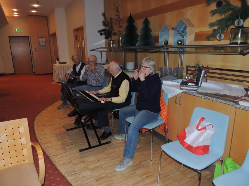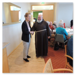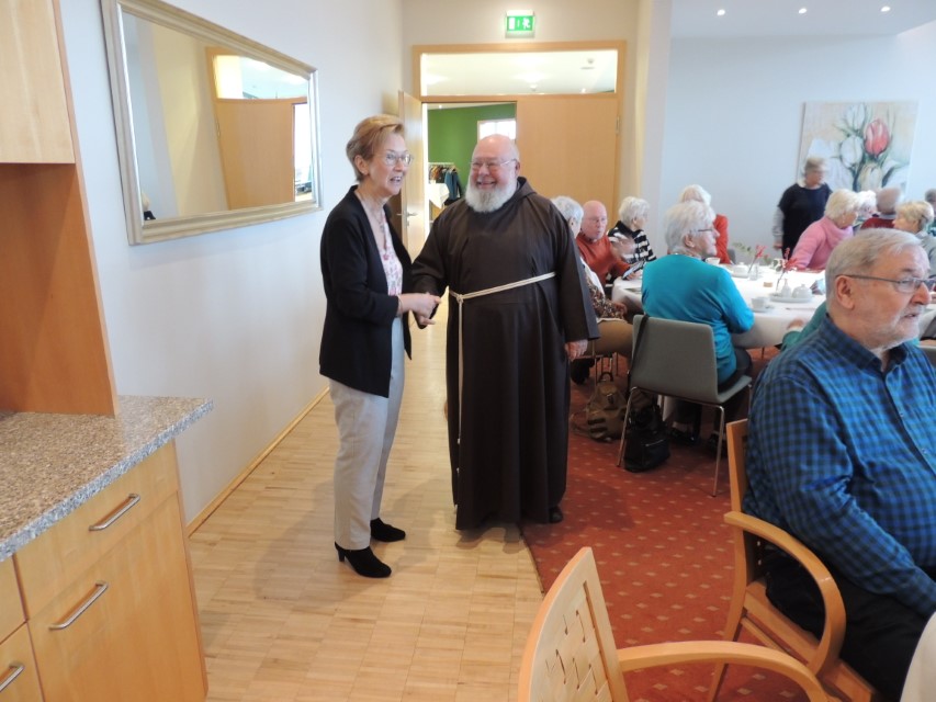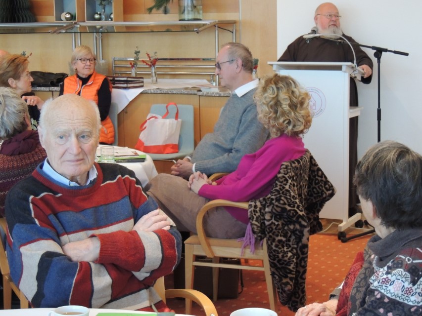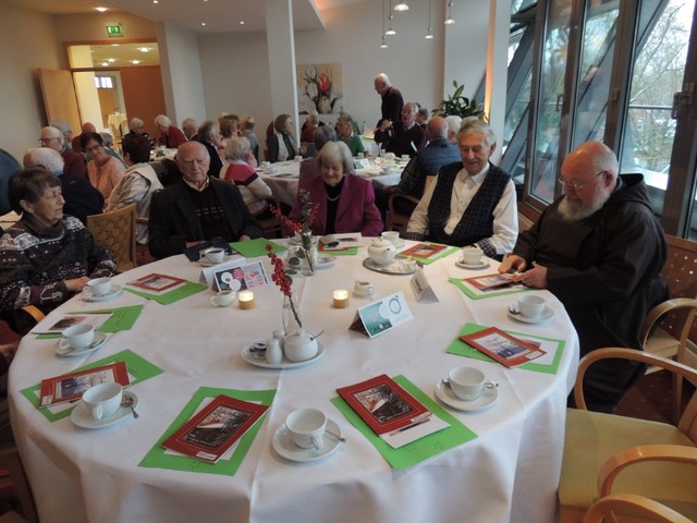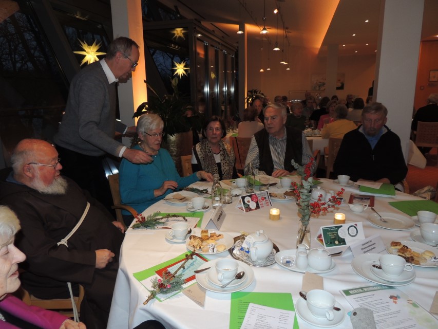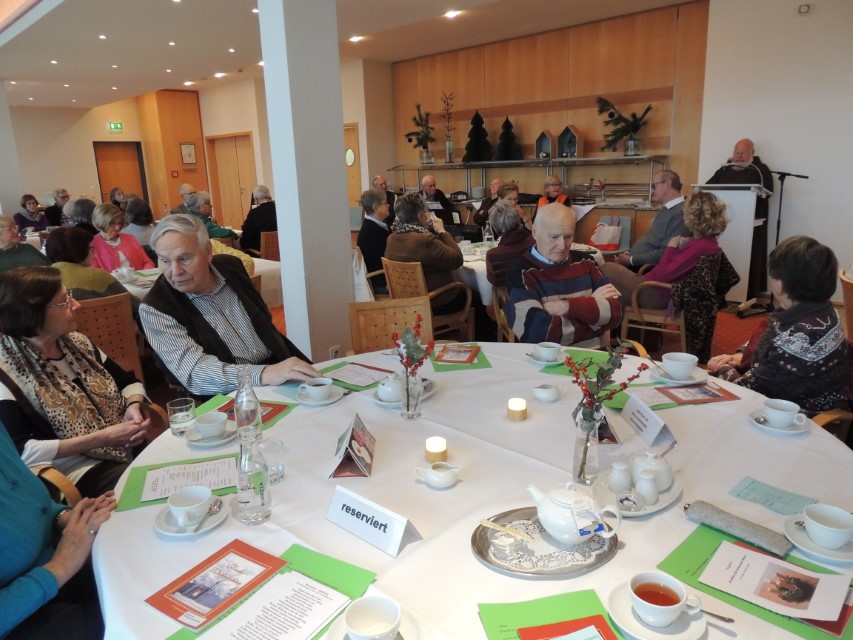 Pater Norbert, Guardian des Klosters, ging auf die Geschichte des Franz von Assisi ein, wie der heilige Franz vor 800 Jahren das Krippenspiel in die Weihnachtszeit ein führte. Gemeinsam gesungene Lieder und vorgetragene Geschichten wechselten sich ab und brachten Besinnliches und Erheiterndes in die Gesellschaft.