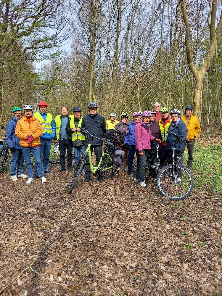 Unter dem Motto „Wir erkunden unsere Heimat“ starteten 19 Teilnehmer der Radlergruppe des Heimatvereins Werne am Gründonnerstag zur ersten Fahrradtour in diesem Jahr und eröffnete damit die diesjährige Saison. Die von Mitglied Peter Helmdach ausgearbeitete und von ihm angeführte Route ging zu nächst über die alte Zechenbahntrasse nach Stockum, dann weiter am Kanal entlang bis Sandbochum. Von dort radelte man weiter über verschiedene Wege nach Bergkamen, wo in Kathi’s Café Einkehr gehalten wurde. Bei Kaffee und Kuchen blieb noch Zeit für einen kurzen Plausch bei dem man immer wieder hörte, dass einige Teilstrecken durch Bergkamen noch völlig unbekannt waren. Gut gestärkt ging es dann nach Werne zurück. Die nächste Fahrradtour des Heimatvereins ist am Donnerstag, 04. Mai 2023.