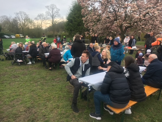 am Ostermontag besuchten unsere Mitglieder das Osterfeuer der Kolpingsfamilie Werne auf dem Hof Hagemann-Lochthofen an der Capeller Straße 138. An die 100 Personen waren gekommen. Der Vorsitzende der Kolpingsfamilie begrüßte die Gäste und bedankte sich bei den zahlreichen Helfern für Ihre Mitarbeit. Der Gardian des Klosters und gleichzeitig der Präses der Kolpingsfamilie, Pater Norbert, übernahm die Einführung mit einer kurzen Andacht zum Thema Feuer. Dazu wurden einige Lieder gesungen. Die Kolping-Jugend versorgte die Gäste mit Speisen und Getränken. Bei gekühlten Getränken, Würstchen vom Grill, Stockbrot und Rühreiern klang der Abend aus.
