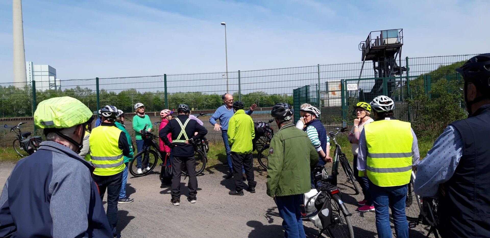 Die Radlergruppe des Heimatvereins und weitere Interessierte trafen sich wie gewohnt an der Goerdelerstraße. Unter der kundigen Führung von Peter Helmdach ging es durch die Lippewiesen in Richtung Gersteinwerk. Dort wurden die 35 Radler empfangen und mit der werksüblichen Schutzausrüstung versehen. Untersachkundiger Leitung wurde das Gelände erkundet. Besonderes Interesse galt den neuen Speicherblöcken, die den Strom für eine ganze Stadt vorhalten können. Im weiteren Verlauf ging es zum Lausbach, dessen Wasser wegen der Bergsenkungen über 20m angehoben werden muss, damit das Wasser in die Lippe gelangen kann.
