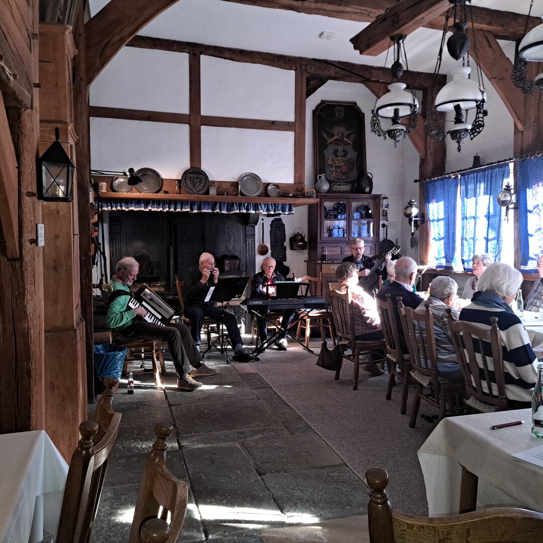 Es durfte auch gesungen werden und der Dank geht hierbei im Besonderen an Marlies Busch, die kurzfristig zugesagt hatte, die Instrumentalgruppe des Heimatvereins auf ihrem Akkordeon zu begleiten.