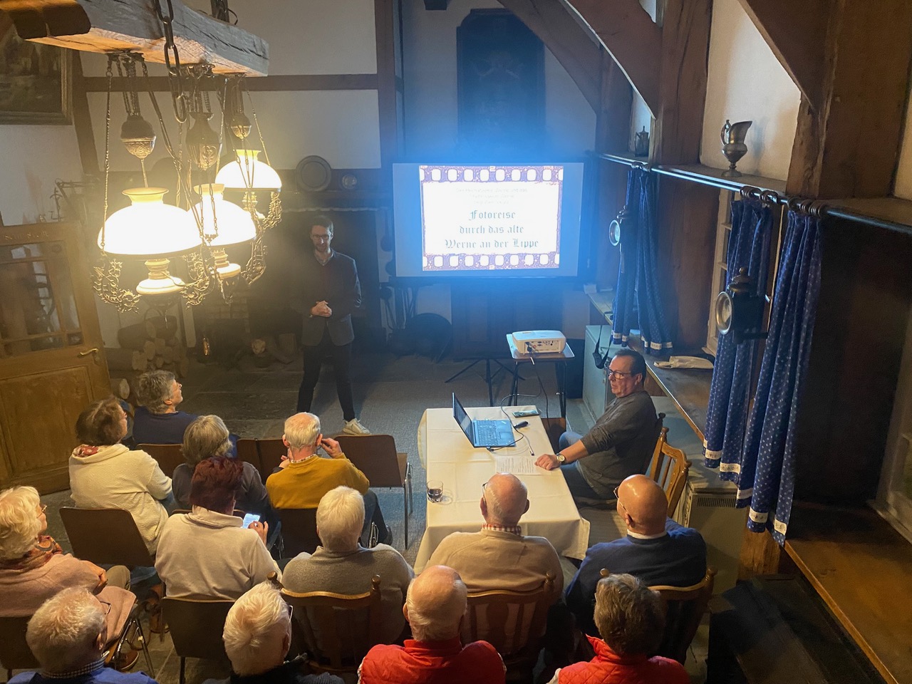 Die Fotoreise durch Alt-Werne ist gut ins neue Jahr gestartet. Die Westfälische Stube im Museum war gefüllt und Museumsleiter Flemming Feß begrüßte die Gäste. Die von Peter Voß und Raimund Happ gezeigten Luftbilder sorgten für viele lebhafte Diskussionen.