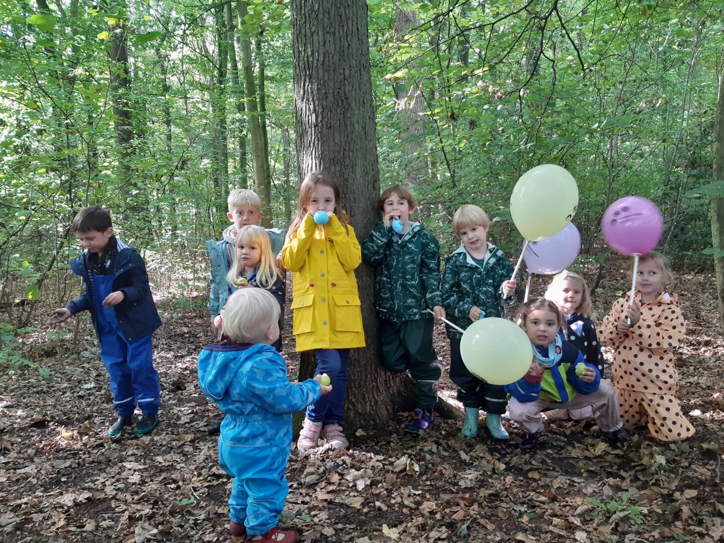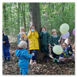 Nach dem einstündigen Ausflug erhielten alle Kinder zur Belohnung für das Mitmachen die kleine Waldfibel „Entdecke den Wald“ herausgegeben vom Bundesministerium für Ernährung und Landwirtschaft und bunte Luftballons.