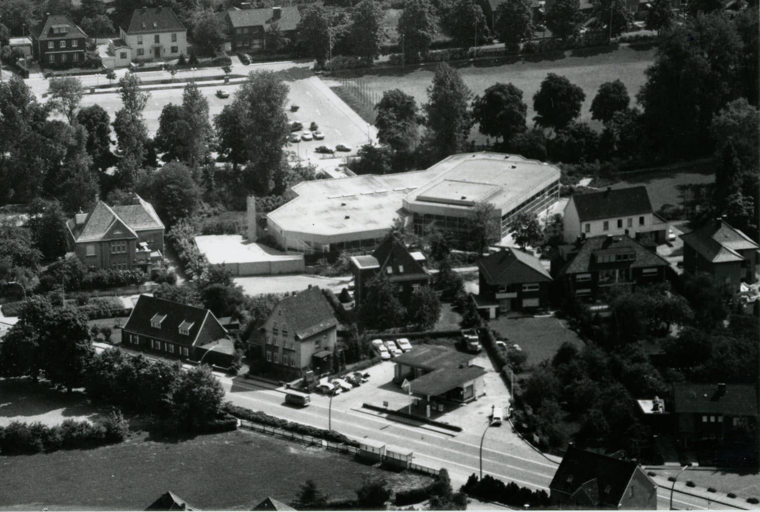 Um 1970 gab es die fünf Tankstellen Fleige, Böcker, Aschoff, Werkmeister und Jäger an der Lünener Straße. Das Luftbild aus den 1970er Jahren zeigt die Gasolin-Tankstelle Fleige, mit dem ehemaligen Sole-Hallenbad im Hintergrund. Heute befinden sich zwei Mehrfamilienhäuser an der Stelle. Foto: Stadtarchiv Werne